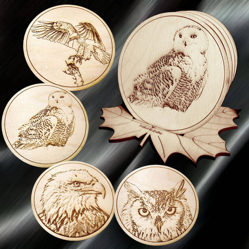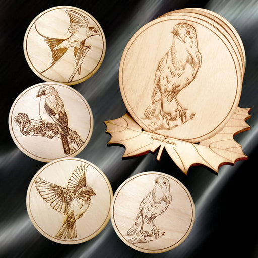 Marque et Produit créé et confectionné au Québec24.99$Ensemble sous-verres oiseaux de proie