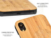 • POLYCARBONATE ROBUSTE – Parce que le simple revêtement en bois ne fournirait pas une protection suffisante contre les impacts, le boîtier intérieur et les côtés de l’étui sont fabriqués en polycarbonate et offre donc une excellente protection. Ceux-ci sont également recouverts d’une couche de caoutchouc pour une protection additionnelle.