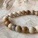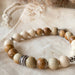 • Bracelet élastique fait à la main à Montréal avec de véritables pierres semi-précieuses de Jaspe paysage et des pierres de rivière beige séparés par des petites billes et un séparateur en acier inoxydable, résistant à l’eau et hypoallergénique. Le cadeau parfait pour se faire plaisir ou à offrir à vos proches !