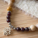 Bracelet sous-bois (pierres semi-précieuses jaspe chrysanthème et grenat, cristal stellaris, acier inoxydable avec breloque fleur de lotus)