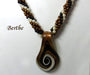 une structure en colimaçon ce qui donne au bijou sa forme tubulaire. La technique nécessite un tour de main précis et une rigueur extrême pour obtenir un résultat parfait, où la magie a sans doute un peu sa part.Un collier unique pour une personne unique