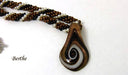 Sa création est unique fabrique avec des perles ayant les couleurs bronze avec insertion de perles blanches et noire.