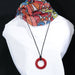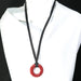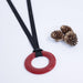 PENDENTIF chic ou casual rouge rond sur ruban de tissu noir. Un cordon lacet de suédine noir (ajustable) additionnel sera inclus à la commande automatiquement.