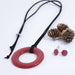Nouveauté/long pendentif rond rouge/sur ruban noir et/ou cordon suédine ajustable
