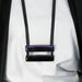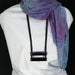 Réalisé de bâtonnets de verre fusionnés reliés ensemble par deux petits rubans d'argent, le pendentif est fixé sur un ruban très sobre de tissu noir sans aucune attache de métal. Anti-allergène