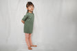 The ample cut allows comfort in the movements. Moreover, the absence of sewing at the armhole allows a comfort at the level of the shoulders during the growth of the children.