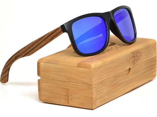 Marque et produit conçu au Québec et confectionné à l’étranger69.00$Lunettes de soleil en bois de zèbre avec verres miroir bleu polarisés