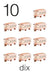 -10 cartes-chiffres composées du chiffre, de celui-ci écrit en toutes lettres, et de son illustration déclinée en autant de fois que le chiffre inscrit sur la carte! Chaque carte possède une face en français et l'autre en anglais, pour faciliter l'apprentissage d'une deuxième langue le moment venu!