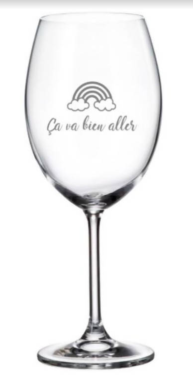 Marque et Produit créé et confectionné au Québec19.99$Verre à vin ''ça va bien aller''