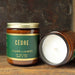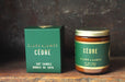 .Ces bougies sont fabriquées à partir d'un mélange de cire de soja pur à 100 % et d'huiles botaniques, avec une mèche en coton. Chaque bougie est versée à la main dans un pot en verre ambré avec un couvercle en métal doré, et est accompagnée d'une belle boîte verte décorée d'or en relief. Ce format de 7,2 oz brûle pendant environ 45 heures.