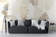Pour elle, le papier peint lui-même représente un canevas où son expression artistique peut prendre forme à travers une infinité de possibilités. Son langage bien à elle, où collage et illustration offrent des ambiances où s’entremêlent couleurs et détails inusités, laissent deviner son attrait pour l’humour absurde et les codes d’un jeu secret consistant à traverser les frontières entre l’art contemporain et celui d’une vie domestique idéale.