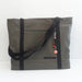 Grand sac urbain (tote bag) de création originale en canevas de couleur vert kaki avec bijoux décoratif, conçu pour vous accompagner toute la journée au travail, à la garderie ou au 5 à 7!