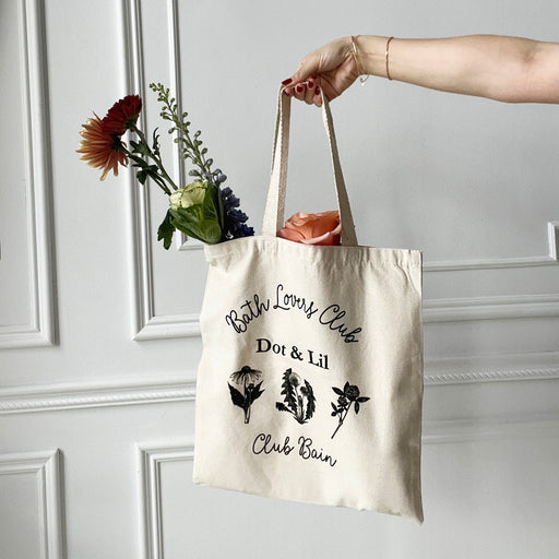 Dot & Lil Bath and Body Inc.Sac fourre-tout Dot & Lil 100 % coton. Rejoignez le Bath Lovers Club ! 16 $ pour une personne, 24 $ pour deux, afin d'être jumelé avec une autr...