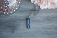 - Création uniqueCollier fabriqué à la mainChaîne en acier inoxydablePendentif en résine avec insertion de pétale bleue et turquoise et dessin d'un tryskelLongueur de la chaîne: 51 cm (20 pouces)