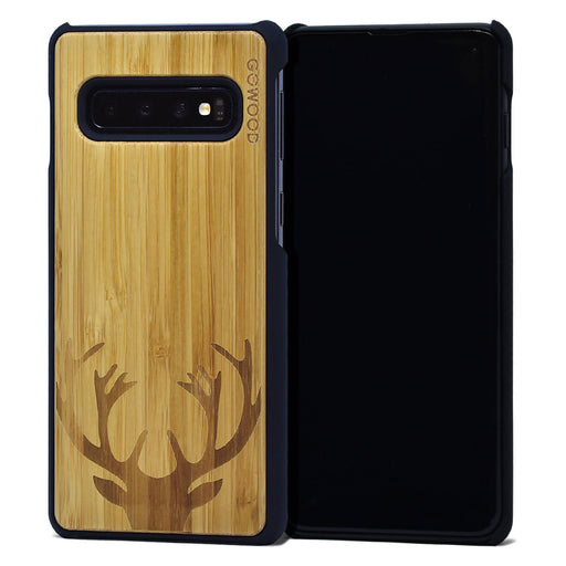Marque et produit conçu au Québec et confectionné à l’étranger25.00$Étui samsung galaxy s10 en bois et côtés en polycarbonate - bambou avec gravure chevreuil