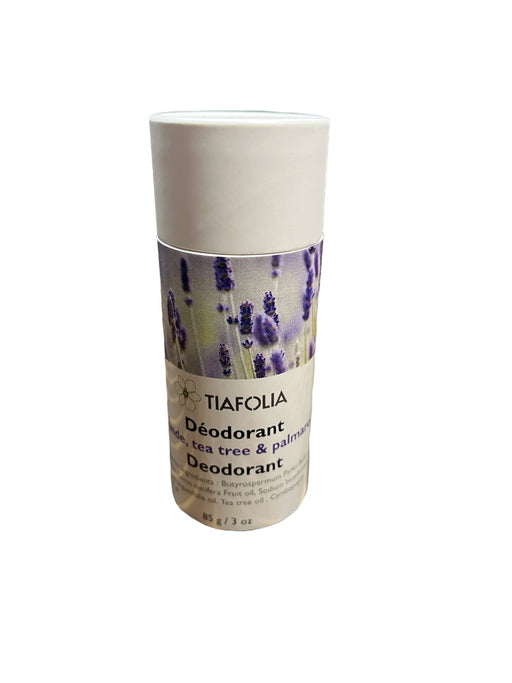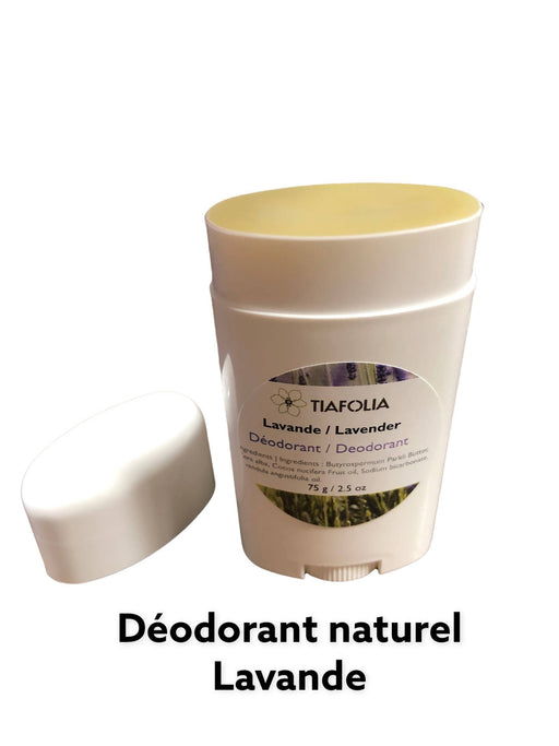 TiafoliaDéodorant naturel à la lavande 75 g Lavande Ingrédients naturels tels les beurres végétaux , bicarbonate de soude et huiles essentielles