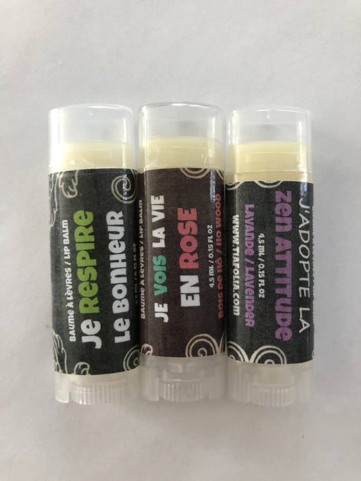 Marque et Produit créé et confectionné au Québec20.00$Baume à lèvres trio
