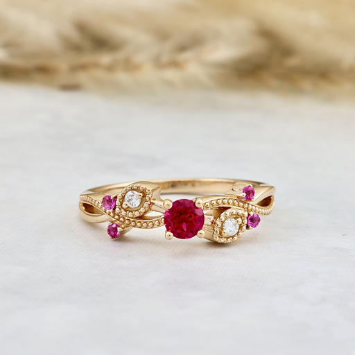 À partir de 2,600.00$Bague enchanteresse en or 14k, diamants et rubis