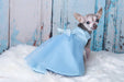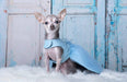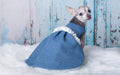 2 robes pour chien dans une : robe bleu pâle tutu chic, réversible robe bohème en denim jeans bleu pâle et fleurs beiges à la taille