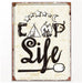 Affiche en métal camp Life. Elle nous rappelle de profiter pleinement du moment présent et de la vie tranquille du camping.