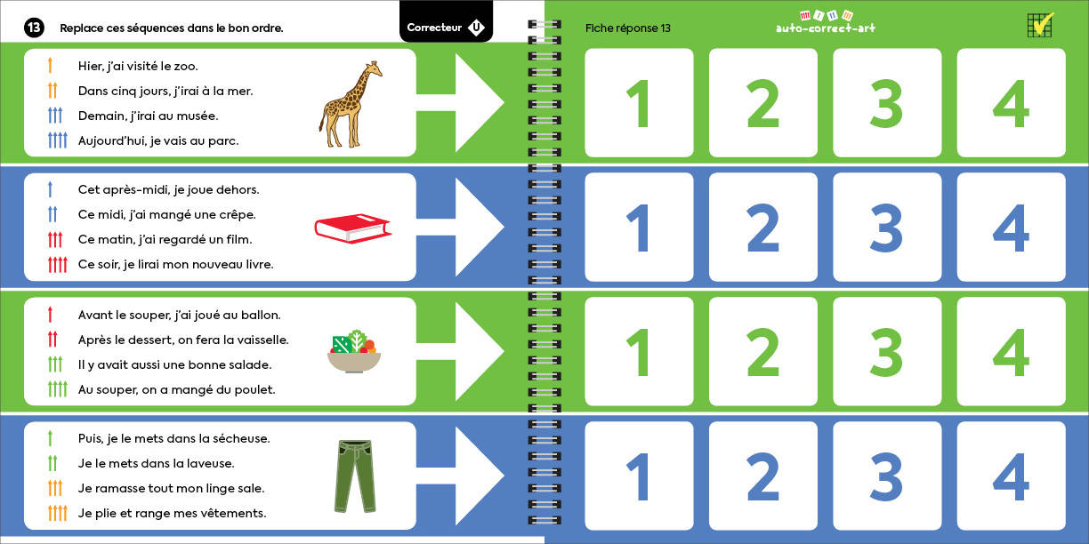 L’enfant travaille à son rythme, s’autoévalue et s’autocorrige de façon amusante. Il développe ses connaissances grâce à des mises en situation faisant appel à l’observation et au raisonnement. Réussite garantie à la fin de chaque exercice!