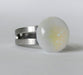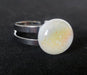Jolie bague intrigante, tout en éclat! J'ai fabriqué la pièce de verre avec du verre dichroïque bleu pâle, sur une base de verre blanc, ce qui lui donne cet éclat si particulier! Je taille et assemble les différents verres selon le résultat que je veux obtenir et je fais fondre le tout à 1500 degrés Fahrenheit.