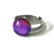 • Jolie bague intrigante, tout en éclat! J'ai fabriqué la pièce de verre avec du verre dichroïque mauve avec des reflets bleus qui lui donne cet éclat si particulier! Je taille et assemble les différents verres selon le résultat que je veux obtenir et je fais fondre le tout à 1500 degrés Fahrenheit.