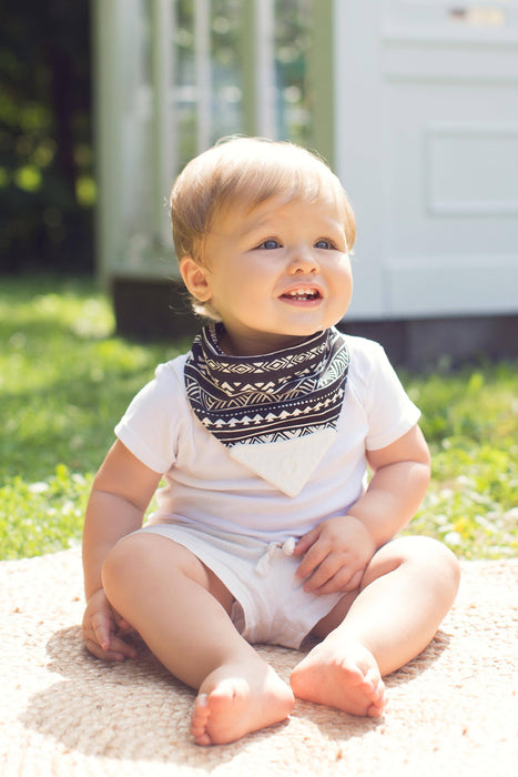 Cet accessoire tendance et pratique permettra à votre petit de mordiller proprement! Notre bavoir de coton absorbe la salive et est muni d’un triangle texturé qui est doux sur les gencives de bébé, lui permettant de mâchouiller la partie de silicone afin de diminuer la douleur associée à la poussée dentaire.