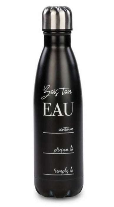 Bouteille refroidisseur d'eau réutilisable et écologique qui vous encourage à boire beaucoup d'eau. Elle est parfaite pour garder votre boisson préférer au froid longtemps. Pratique pour les déplacements et elle est incassable. Se glisse très bien dans le sac à main.