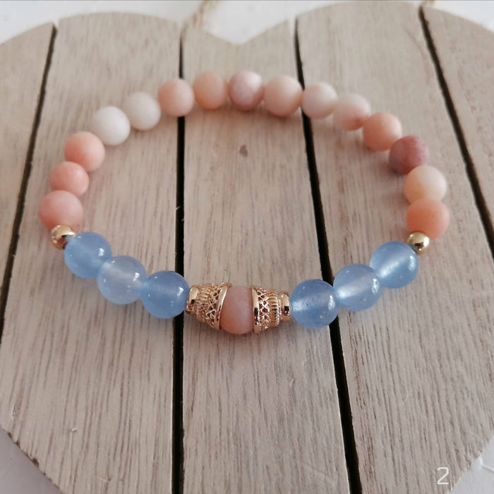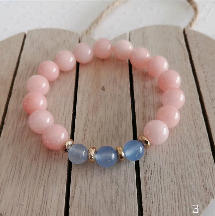 3- Jade bleu et rose-pêche, entretoises Hématite