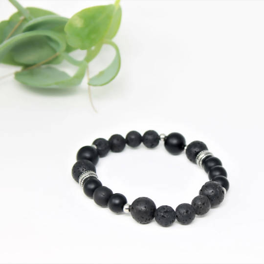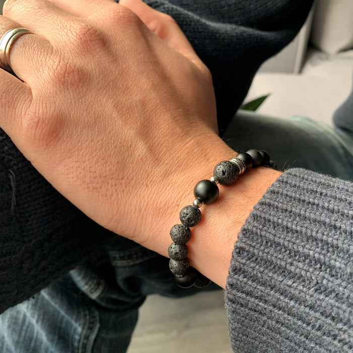 Gravité - bracelet élastique pour hommes en pierres naturelles : onyx mat et pierre de lave