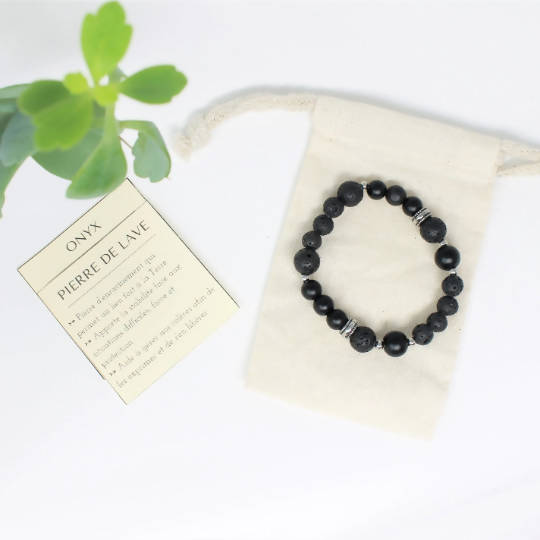 - Fait en pierres semi précieuses : Onyx mat et pierre de lave noire - Rond - 8 et 10mm