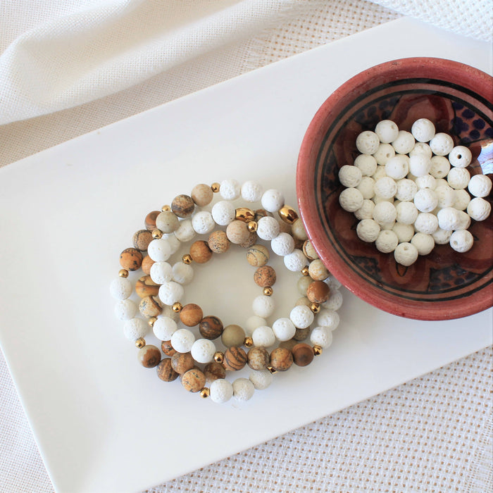 - Pierres naturelles : Jaspe paysage et pierres de lave blanche - Rond - 8mm