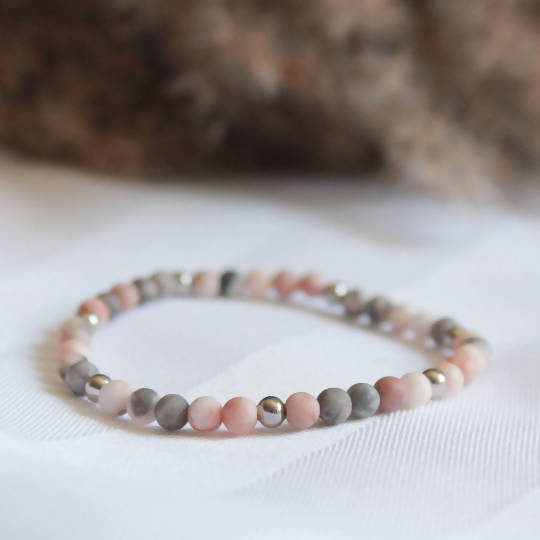 Bracelet pour femmes en pierres semi-précieuses de jaspe zébré rose (4mm)