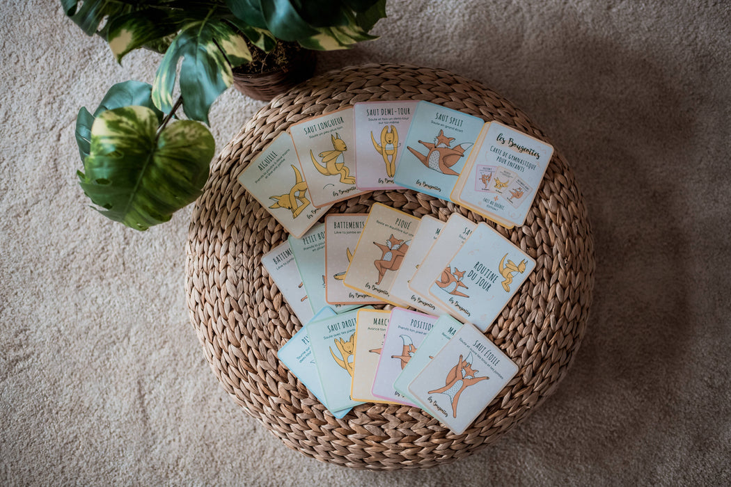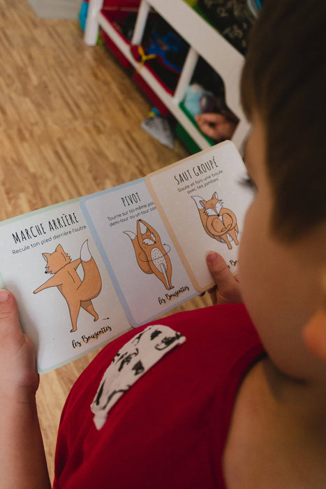Les Bougeottes vous propose 17 mouvements et positions de gymnastique à reproduire partout avec vos petits et grands acrobates. Ces cartes illustrées, entièrement conçues au Québec, permettront à vos enfants d'avoir un premier contact avec la gymnastique et de développer des habiletés motrices telles que l'équilibre et la coordination tout en s'amusant.