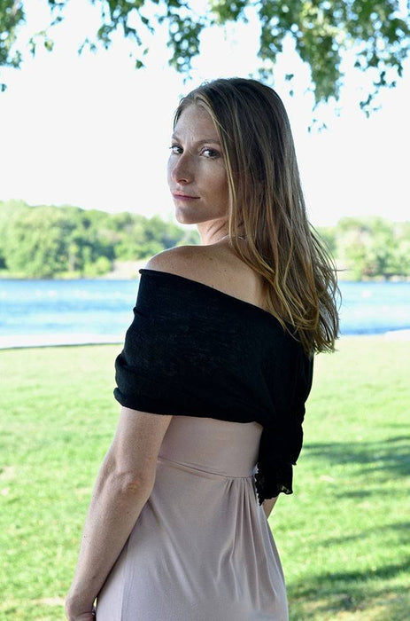 • Magnifique châle en tricot semi-transparent. Polyvalent, il se porte de plusieurs façons.