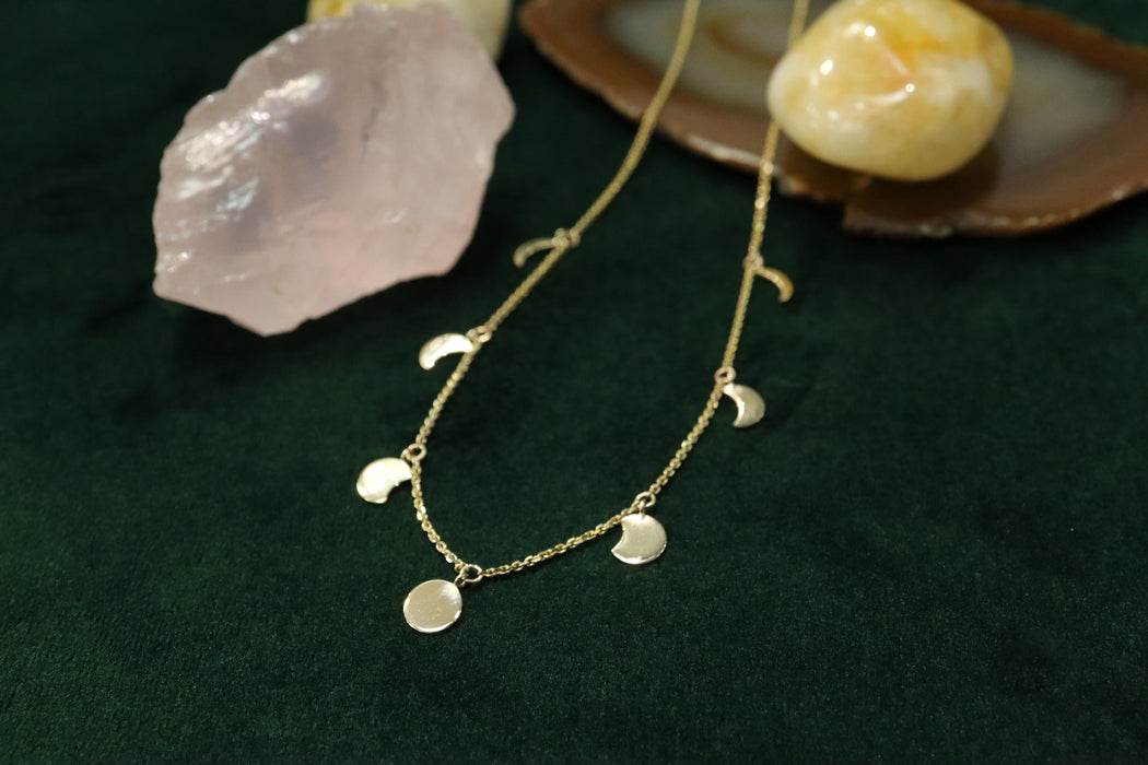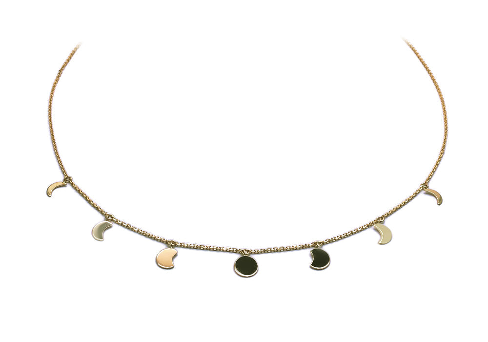 - Un pendentif breloques alignant sept différentes phases de la lune.