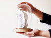 - Matériaux / cloche standard: Cloche en verre avec socle en bois clair, Papier à motif, Fil métallique, Liège.