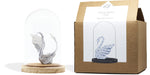 Cloche décorative contenant un modèle d'origami (l'art japonais du pliage de papier) - ici un cygne plié dans un papier à motif blanc avec hexagones bleus. Réalisée à la main, cette cloche est prête à être posée sur une étagère, une table ou un bureau pour venir compléter n'importe quel décor! C'est un objet unique et original à offrir en cadeau ou pour se gâter.