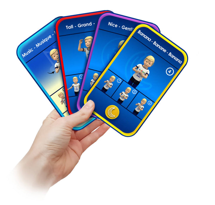 De plus, en vous procurant le coffret de cartes, vous aurez accès gratuitement à la technologie de Réalité Augmentée vous permettant de voir Samuel faire les signes en 3D devant vous!