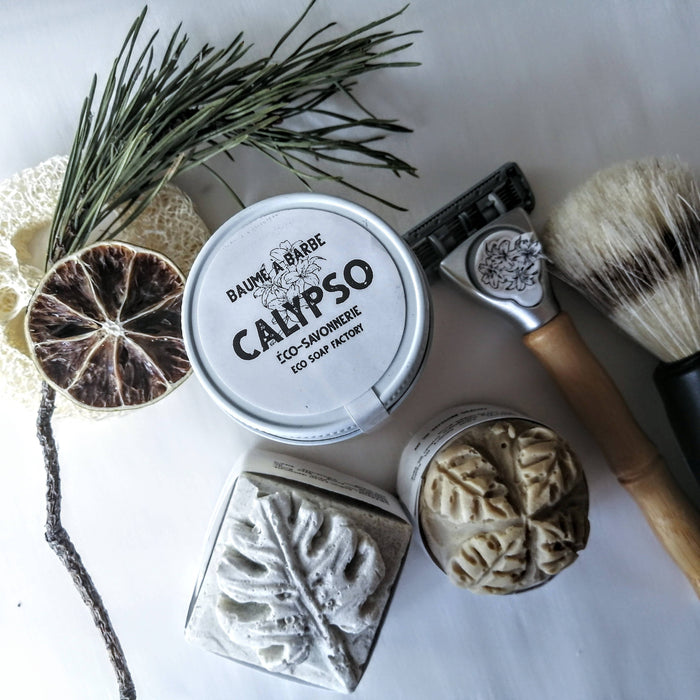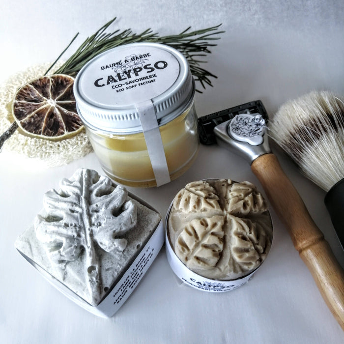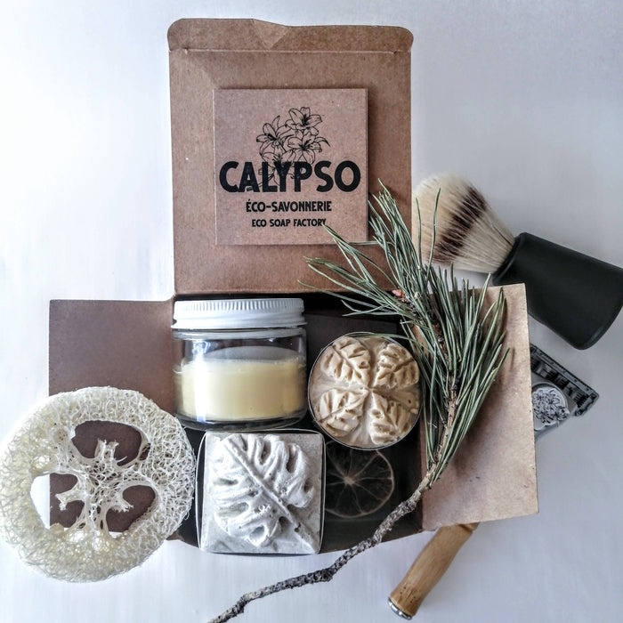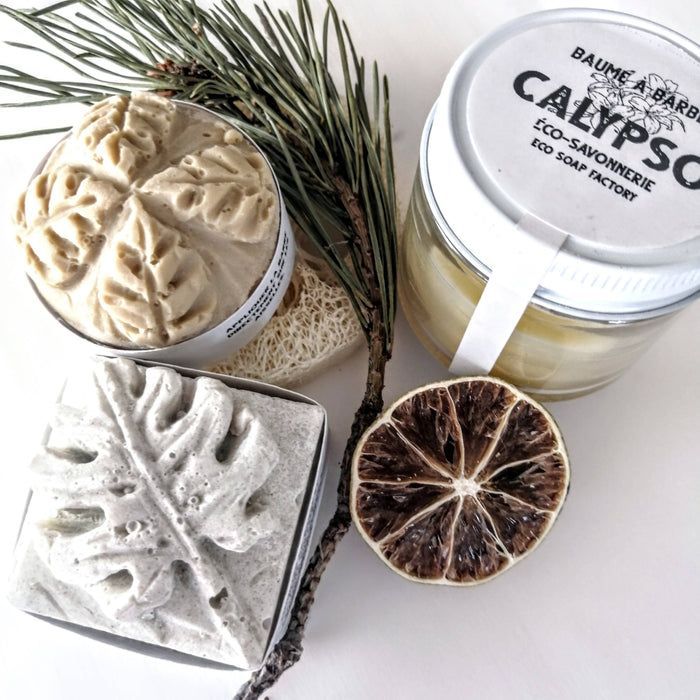 Ce coffret inclus : déodorant solide, baume à barbe et barre de rasage