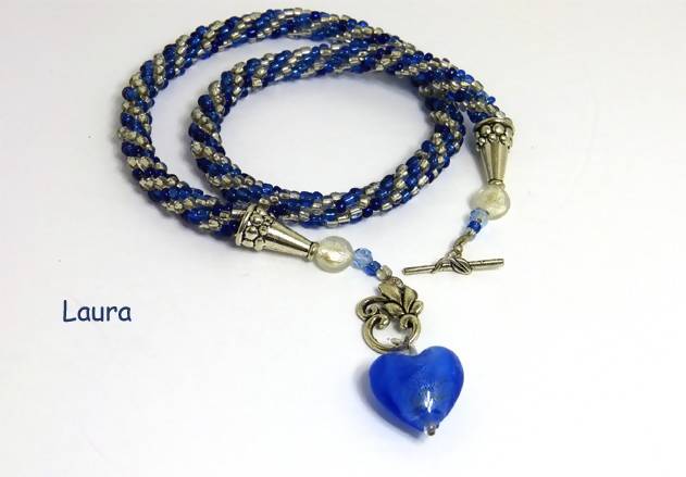 Maille après maille on travaille de l’intérieur vers l’extérieur pour former une structure en colimaçon ce qui donne au bijou sa forme tubulaire.