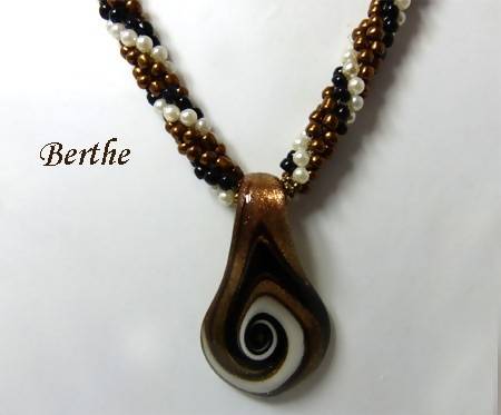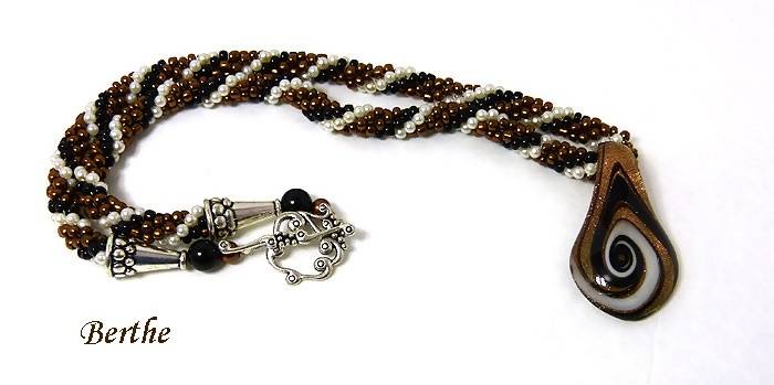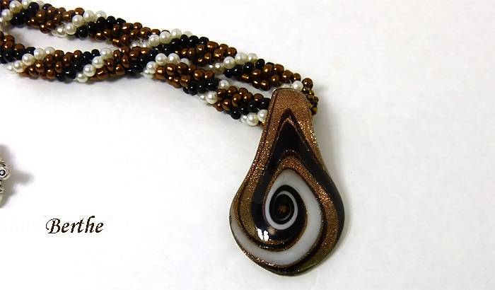 Sa création est unique fabrique avec des perles ayant les couleurs bronze avec insertion de perles blanches et noire.