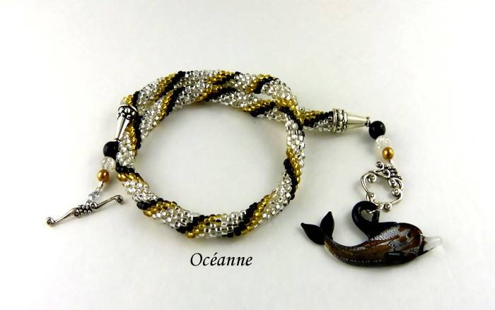 crocheter les perles une à une.  Maille après maille on travaille de l’intérieur vers l’extérieur pour former