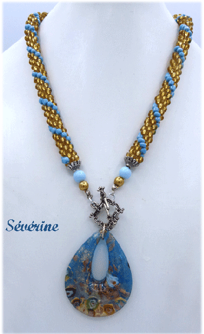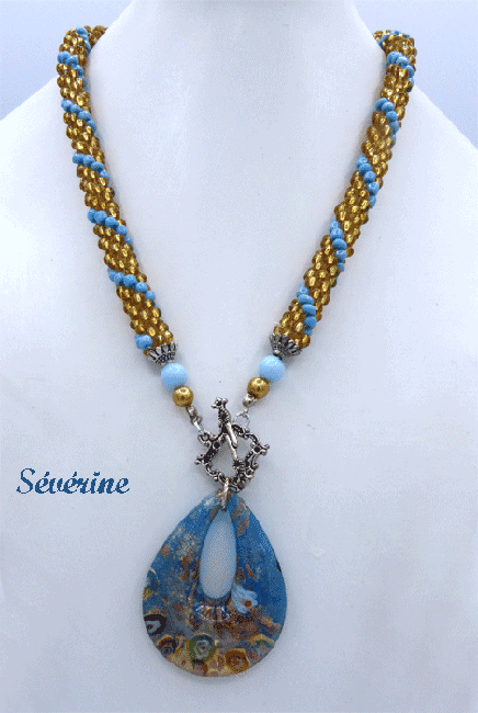 Le collier mesure 50 cm, son pendentif 6cm.Ma technique de fabrication de ces colliers est un peu complexe.