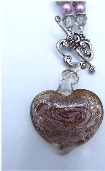 Il est fait de perles de verre transparentes avec insertion de perles rose.