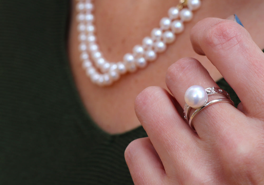 Double signature │bague pour femme en argent sterling │perle d'eau douce blanche