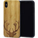 Étui iphone xs max en bois et côtés en polycarbonate - bambou avec gravure chevreuil