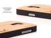 - POLYCARBONATE ROBUSTE – Parce que le simple revêtement en bois ne fournirait pas une protection suffisante contre les impacts, le boîtier intérieur et les côtés de l’étui sont fabriqués en polycarbonate et offre donc une excellente protection. Ceux-ci sont également recouverts d’une couche de caoutchouc pour une protection additionnelle.