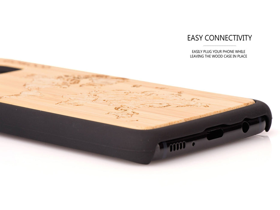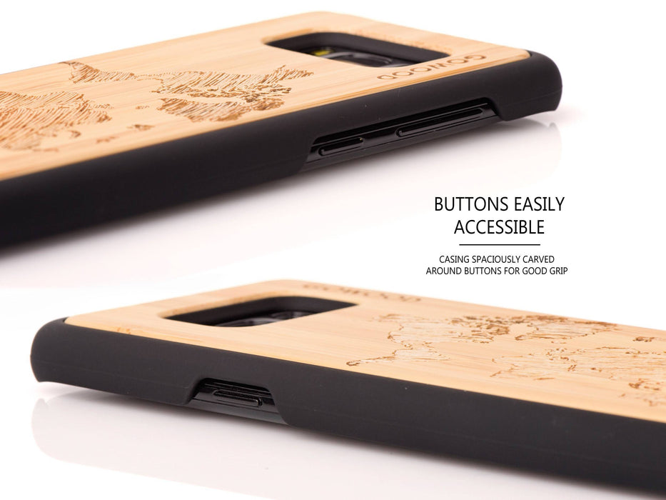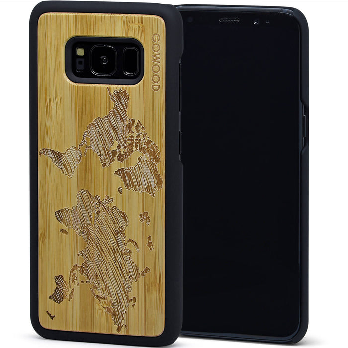 Étui samsung galaxy s8 en bois et côtés en polycarbonate - bambou avec gravure carte du monde